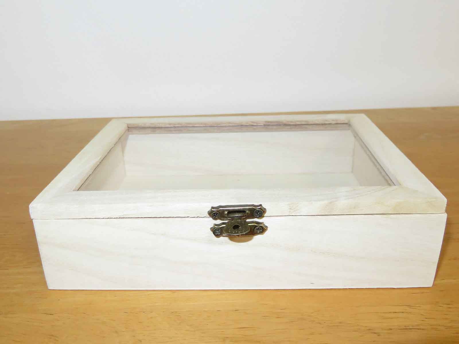 ウッドボックス(クリア蓋付き、ロック付き)110円