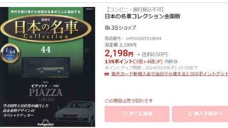 日記・コラム・つぶやき 日本の名車コレクション第44号 昨日発売の日本の名車コレクション第44号 私が最初に買った車だったので買おうと思って いろんなネットショップ 見たが すでに売り切れか転売ヤー価格 これの前の号のカリーナ は余裕で 在庫あるので余裕 かと思いきや まさかの買いそびれ がっか... 2024/05/08 7:53 日記・コラム・つぶやき