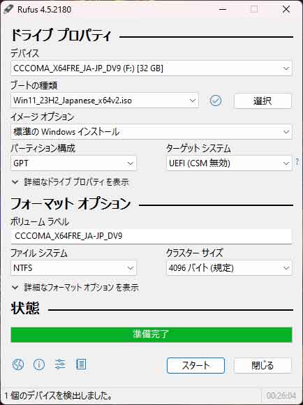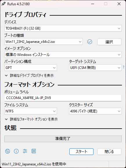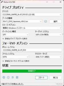 ブート用のUSB作成開始します
