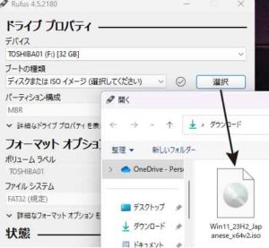 Windows11のISOイメージを選択