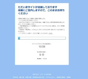 10時50分に再検索かけたらサイトが混み合ってますページに飛ばされた!?