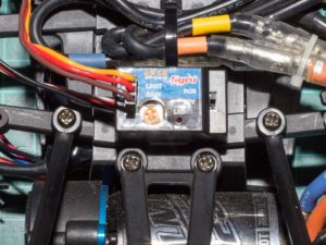 ジャイロから出てるハーネスを受信機に挿して設置完了