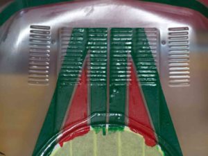 Alitaliaカラーの緑と赤の塗り分けはアクリジョンカラーで筆塗りしたが