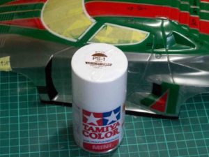 ボデイー全体はタミヤ ポリカーボネートスプレー PS-1 ホワイトでスプレー塗装