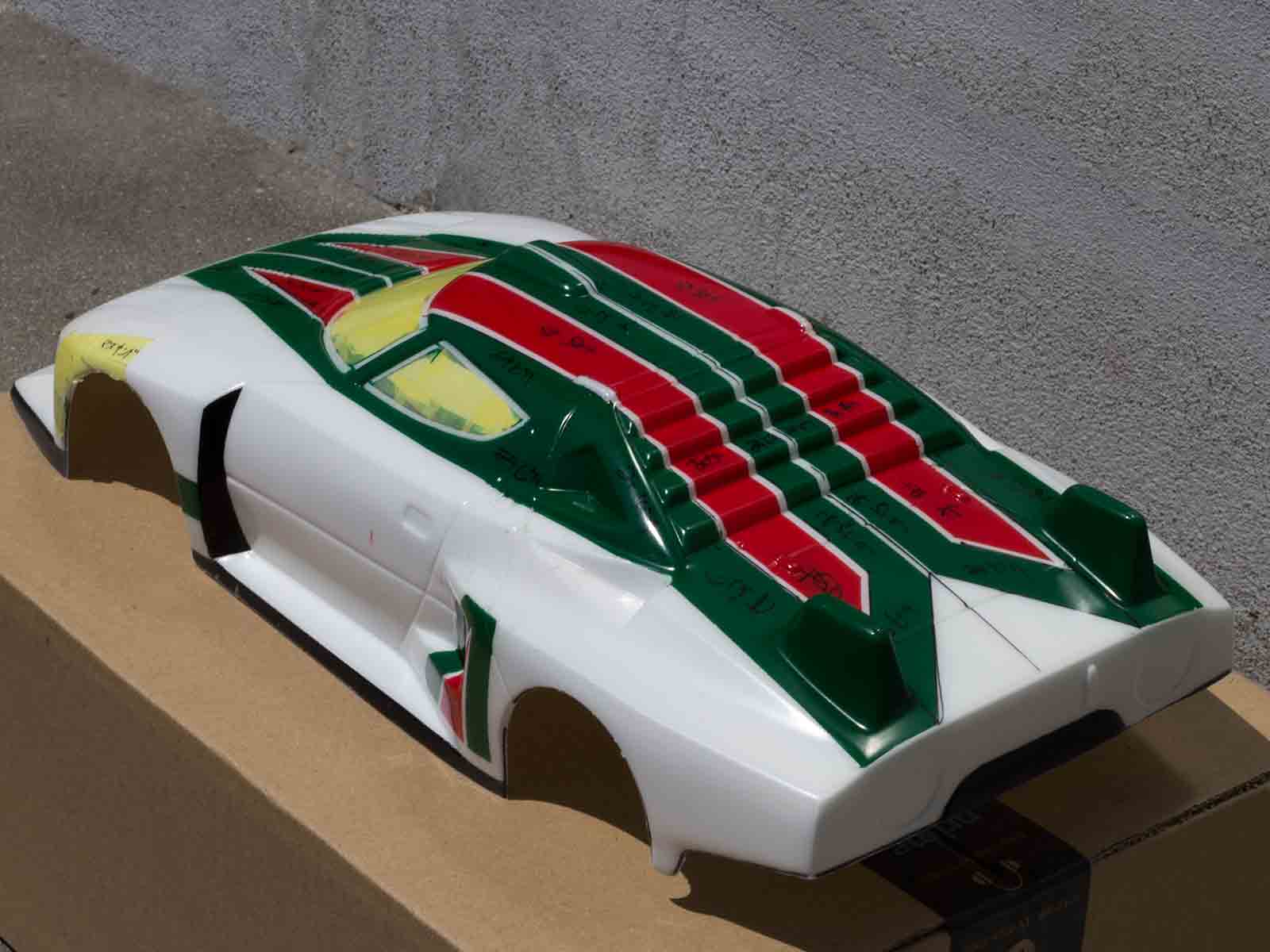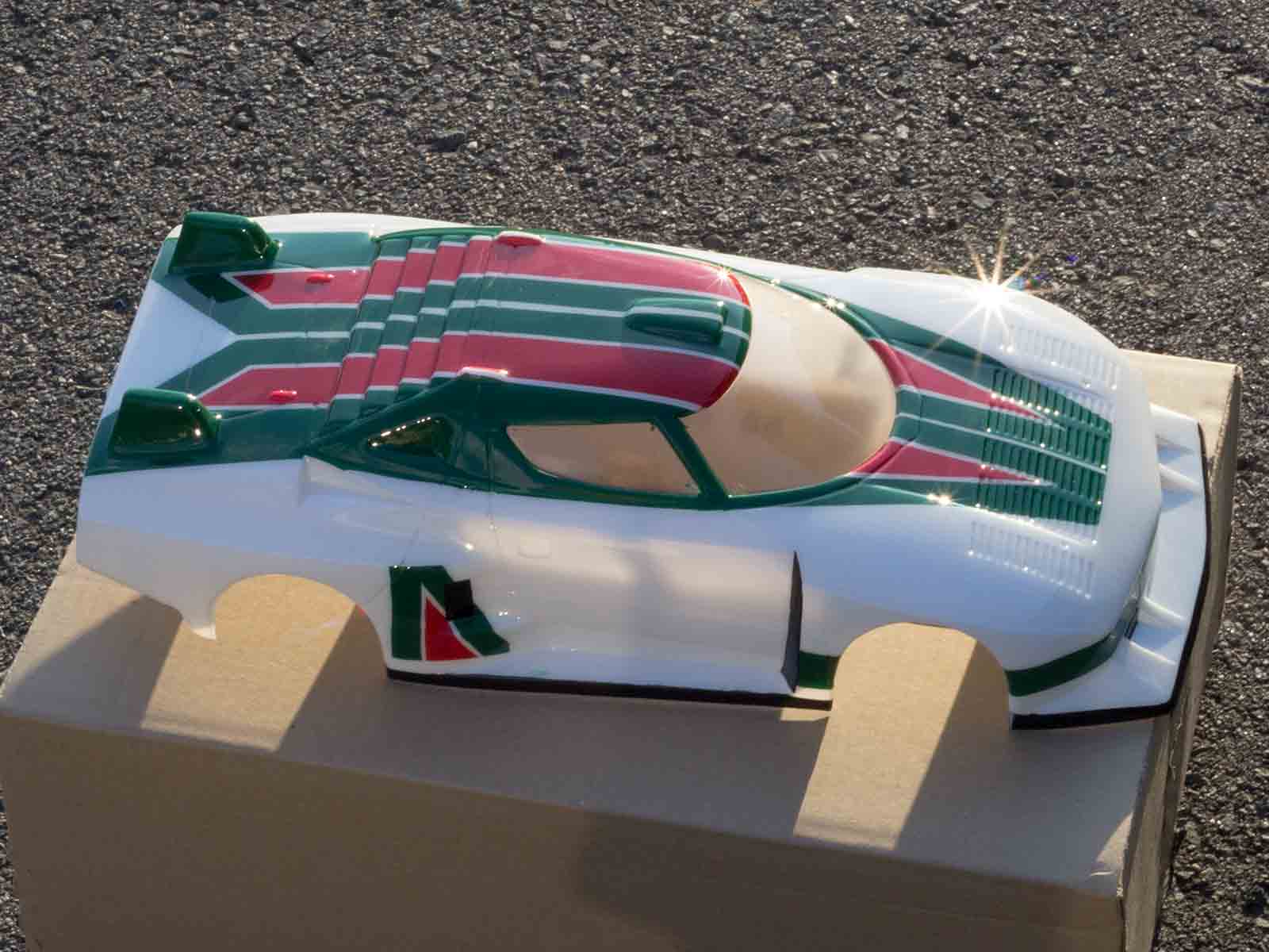 Alitaliaカラーの緑と赤の塗り分けはアクリジョンカラーで筆塗りしたが