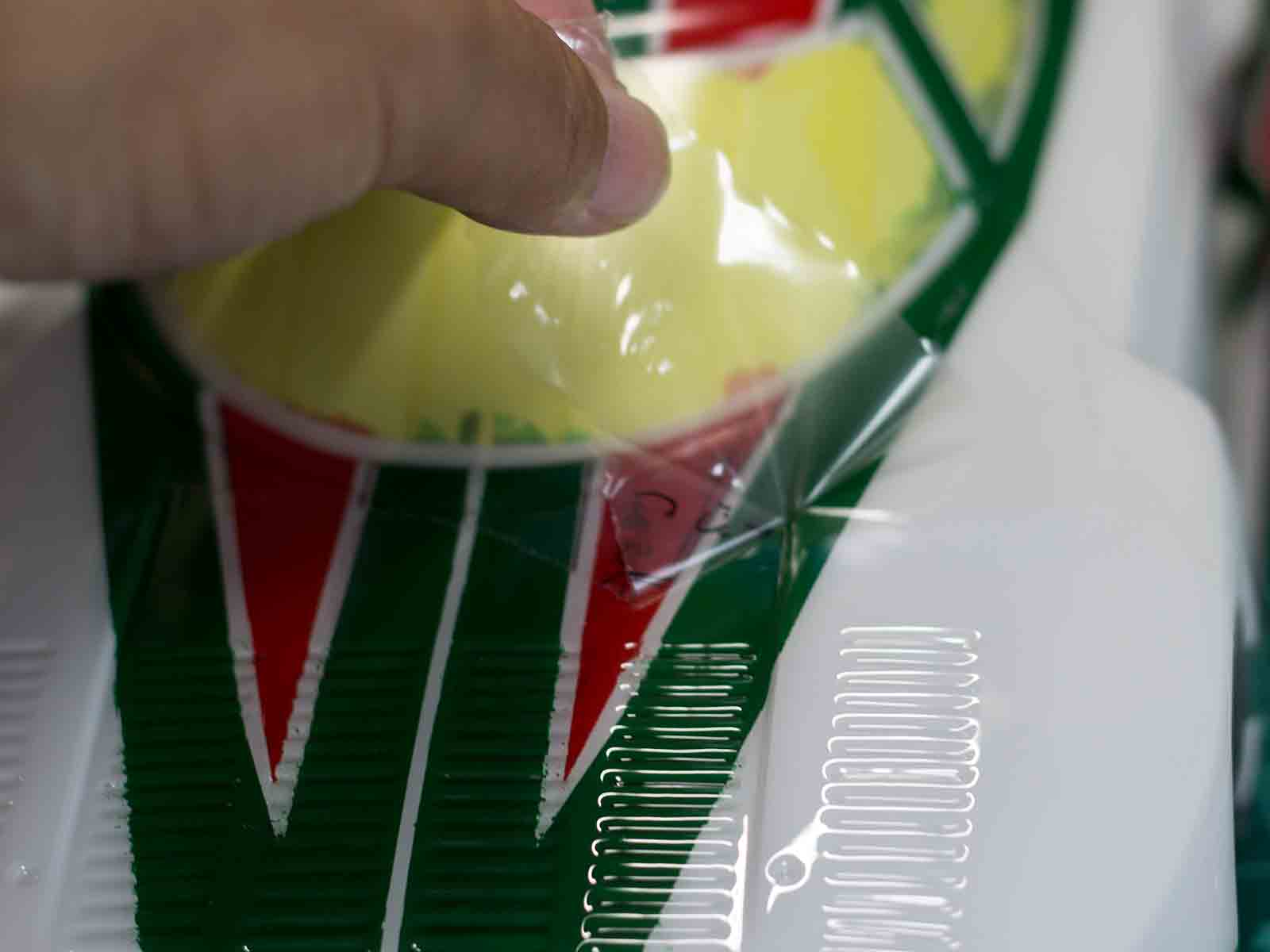 ボディー塗装のお楽しみ表面の保護フイルムを剥がします