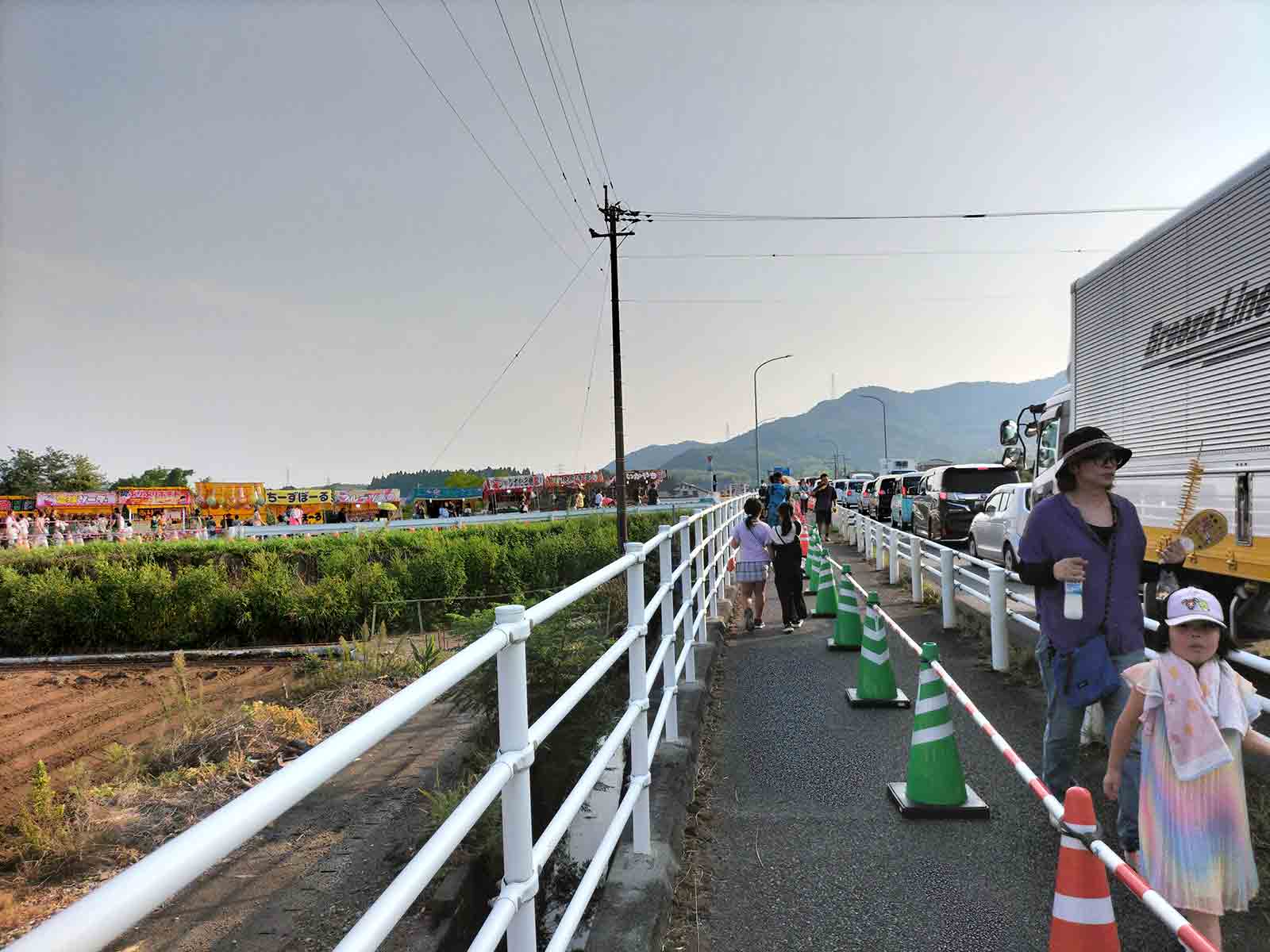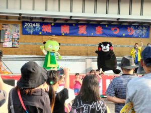 城南まつり 日記・コラム・つぶやき 2024/09/07 19:28 今日は待ちに待った城南まつり!? 熊本市に編入されて一旦は無くなったんだけどね やっぱり地域活性化の為には何かイベントは必要ですよね 20時から花火も上がるし 盛り上がります 4時頃ワイフと行ったらキッチンカーや出店が出てる河川敷のエリアはガラガラで余裕 夏祭りだから盛り上がりは夜から 去年の経験則でいくと17時過ぎ頃になると 人だらけのドンチャン騒ぎ 去年が酷かったので今年は早めに行って たこ焼きと焼きそば、フライドポテト唐揚げ買って家に持ち帰り夕飯に…. 4時からのステージはくまモンと 城南町のマスコットキャラクター火の君 古代くんのショー 熊本が大好き~♪あとぜき♪ お祭り会場の脇を通る国道は4時時点で大渋滞 知らずにこの国道利用した人は何事か!と思ったでしょうね