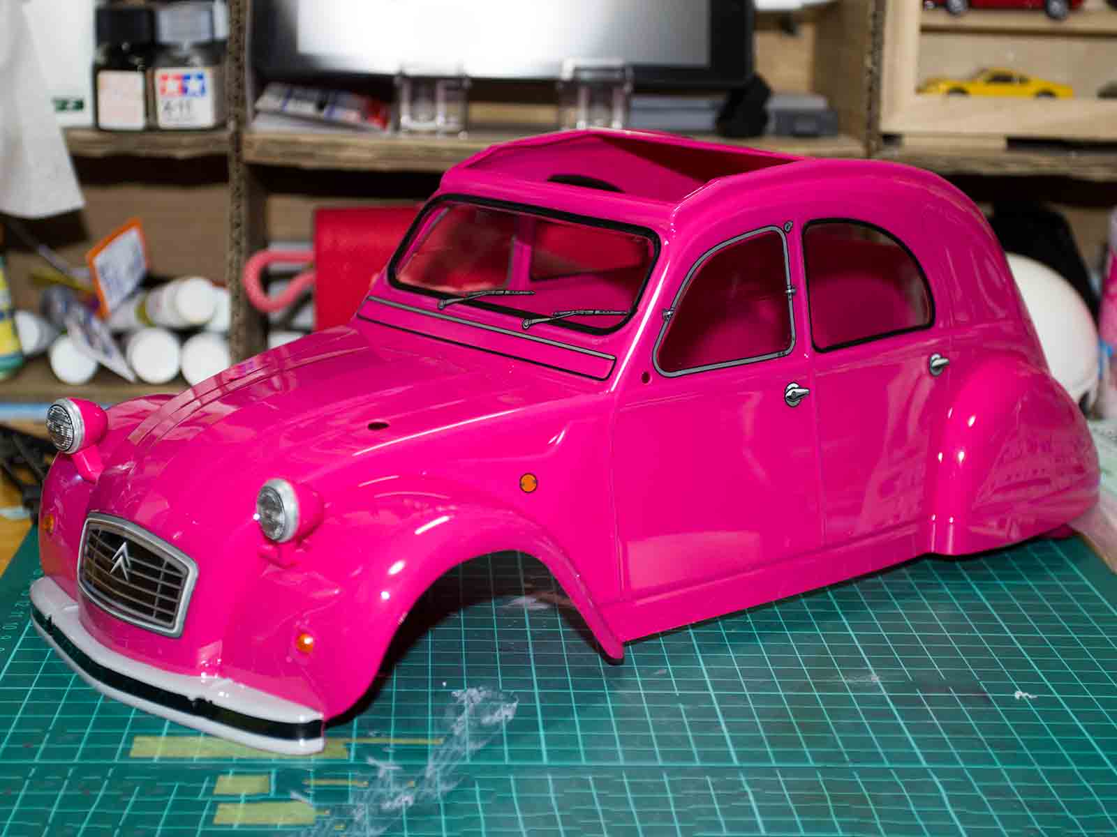 タミヤ1/10RC シトロエン 2CVラリー スペアボディセットの制作#4 ラジコン 2024/09/14 20:30 昨日会社定時で帰り 18時過ぎにビールをプシュッと 寝たのは21時ちょい過ぎ 今朝は5時に目が覚めシトロエン 2CVの仕上げ ステッカー貼りを朝っぱらかりしました 今回はラリー仕様ではないのでラリー用の派手なステッカー貼らないので早く出来るかな と…思ったがここまでで3時間 簡単そうに見えて結構時間がかかりました