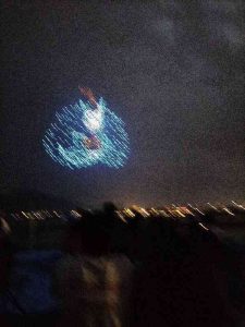 ドローン ショー 初めて見たけど 無料観覧席では文字の向きが逆だったり 音楽聞こえなかったりだけど 感動!