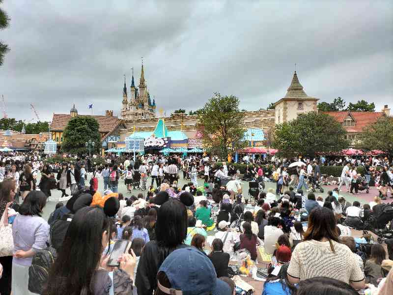 ハロウィンのショー待ちだか 一時間前に来てこれですわ 平日とか関係ないな