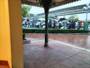 ディズニーランド 到着 小雨が降ってますがすごい人が並んでます