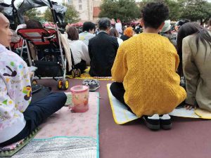 ハロウィンのパレード待ちで 二時間レジャーシートに座ってます 二時間無駄だなぁ