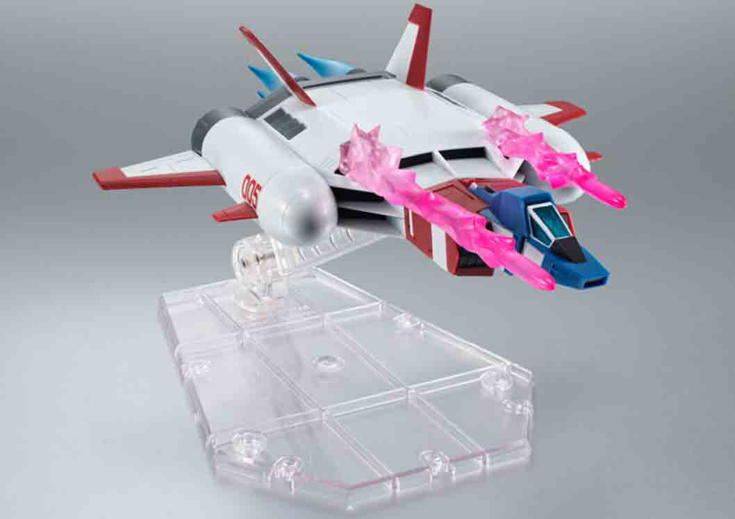 ソロモン攻略戦をテーマにした特別なカラーリングが施されており、ファンにとってはコレクションの一つとして価値があります。本体(005:スレッガー機)には、ランディングギア、バーニアエフェクトパーツ、メガ粒子砲エフェクトパーツ、多弾頭ミサイルエフェクトパーツなど、多くのアクセサリーが付属しています。また、専用台座も含まれており、ディスプレイに最適です。