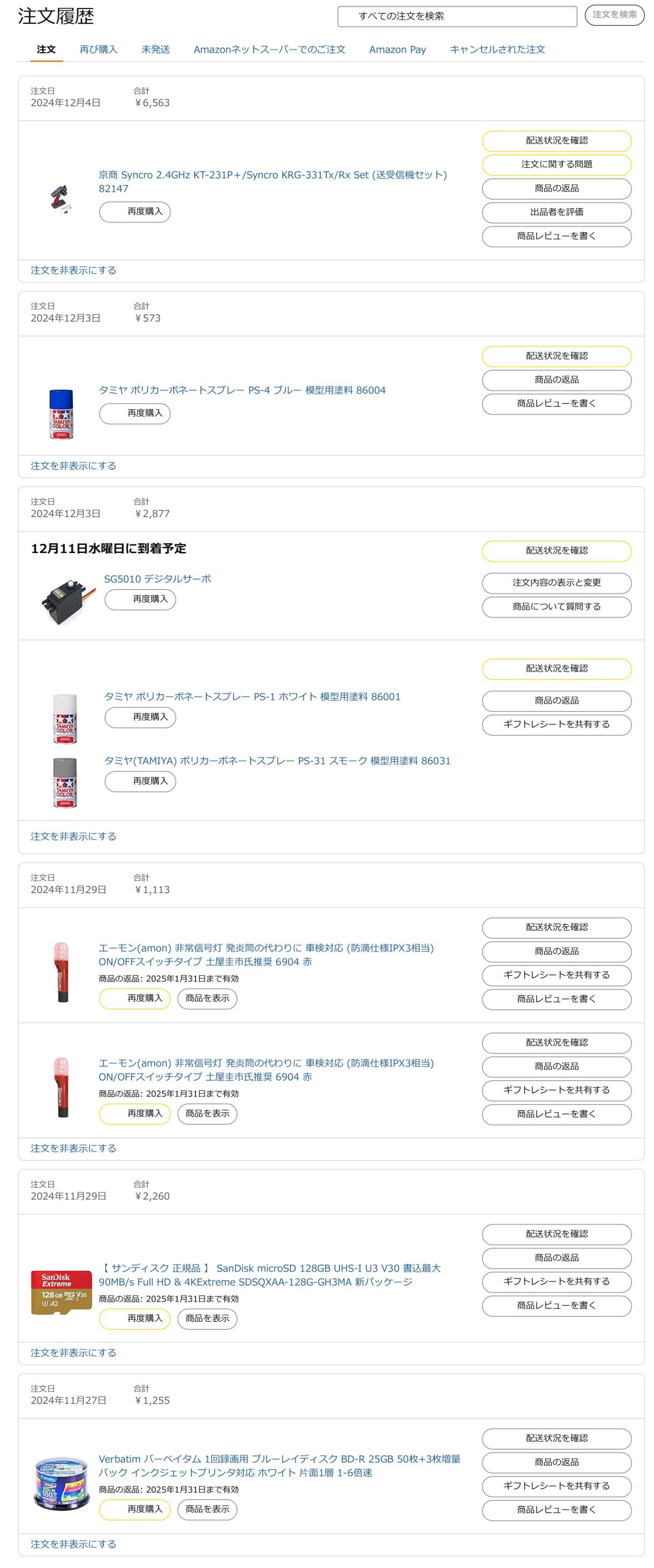 結局 Amazon で1万円かいもん 日記・コラム・つぶやき 2024/12/03 8:00 絶賛開催中の Amazon ブラックフライデーカセール 1万円買うとポイントアップのチャンス こざこざ 合わせて 1万円分以上購入 まんまと罠にハマりました 買う気も無かったプロポまで買ってしまった