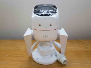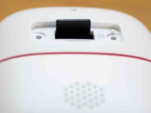 記録用のmicroSDカードを装着します。Tapo C310の箱には512GBまでのmicroSDカード対応と書かれていましたが、まずは手持ちで不要なmicroSDカードを挿してみます。東芝製の32GBのmicroSDカードで、購入当時は大容量だと思っていましたが、今ではどう使おうか迷ってほとんど使っていないものです。時代の流れとは怖いものです。