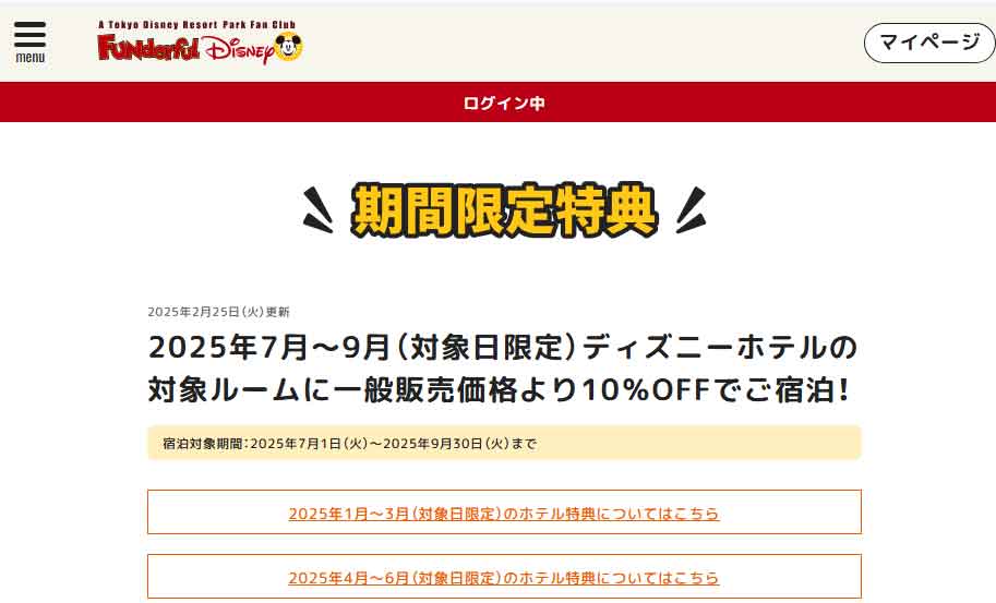 期間限定特典 | ファンダフル・ディズニー特典 日記・コラム・つぶやき 2025/02/26 7:57 https://www.tokyodisneyresort.jp/treasure/fantasy/fanclub/index.php?page=benefit_hotel_2507 9月もディズニーホテル 10%オフの対象になるんだ でも ハロウィンの時期はそんなことしなくてもお客さん いっぱい来るから なないでしょうね 今年もハロウィンには行きたいな