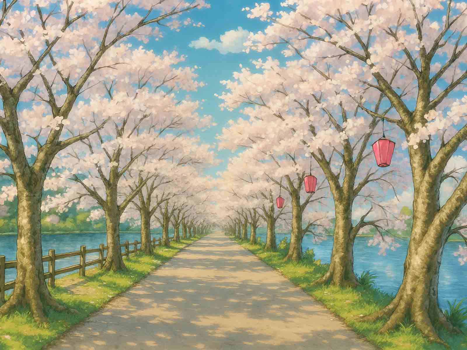 ただの桜並木を描いた絵みたいなwwwwwwww