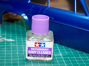 まずはウインドウのマスキングを剥がし、塗料のはみ出しを綿棒にプレペイントクリーナーを浸けて拭き取り修正。