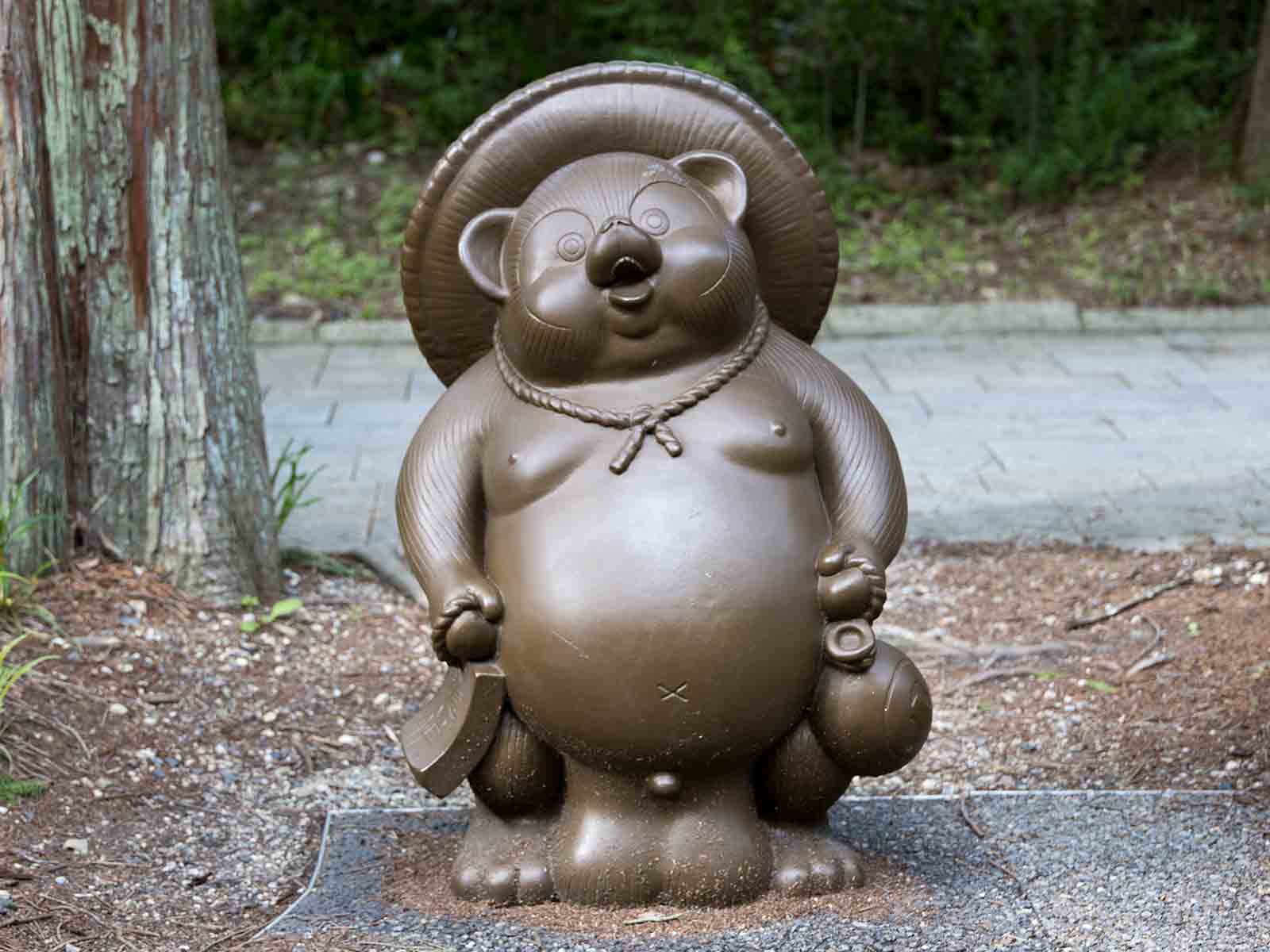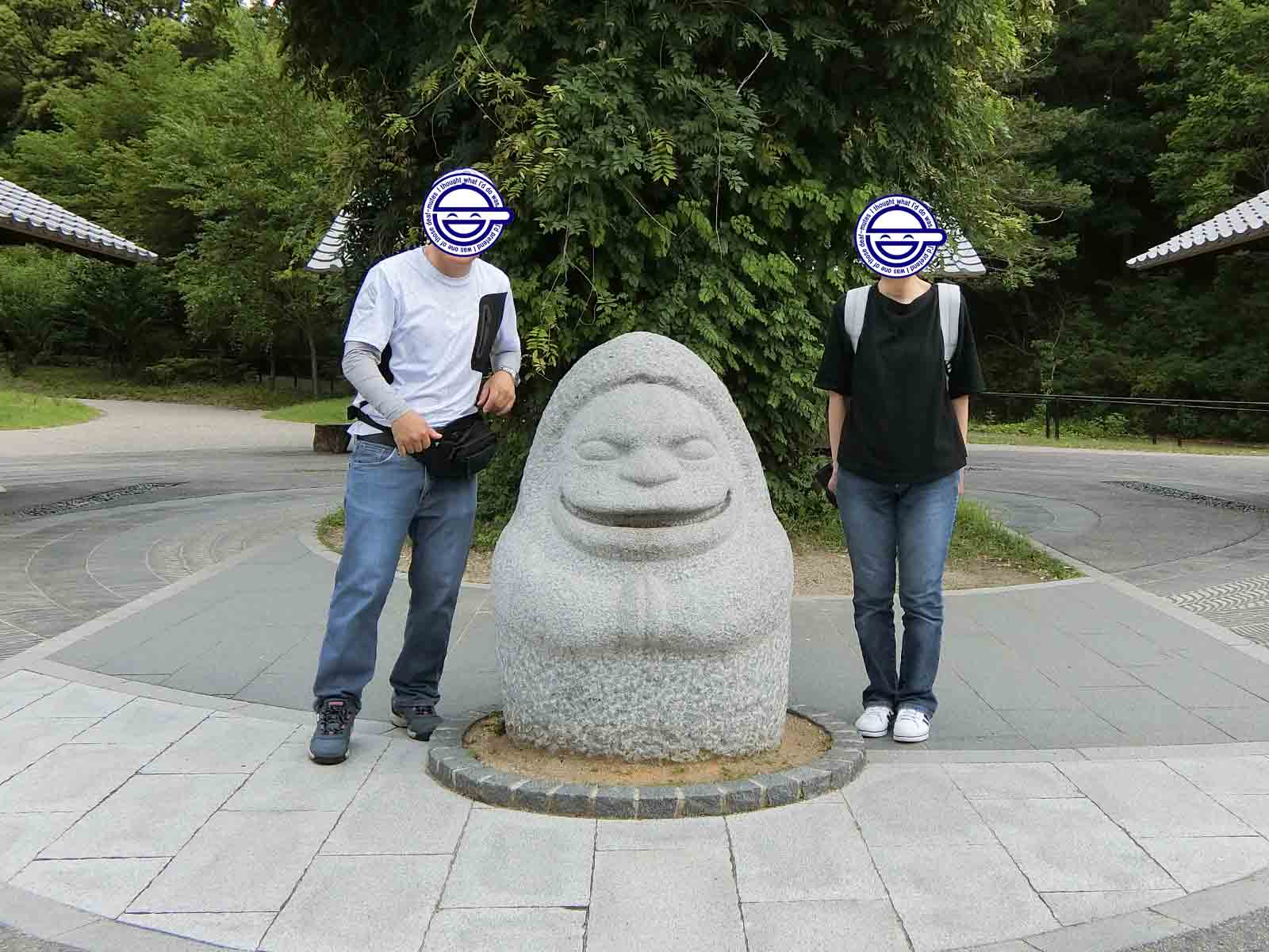 石人を中心に、緑に囲まれての一枚は、まるでジブリの世界に入り込んだような旅の記念。