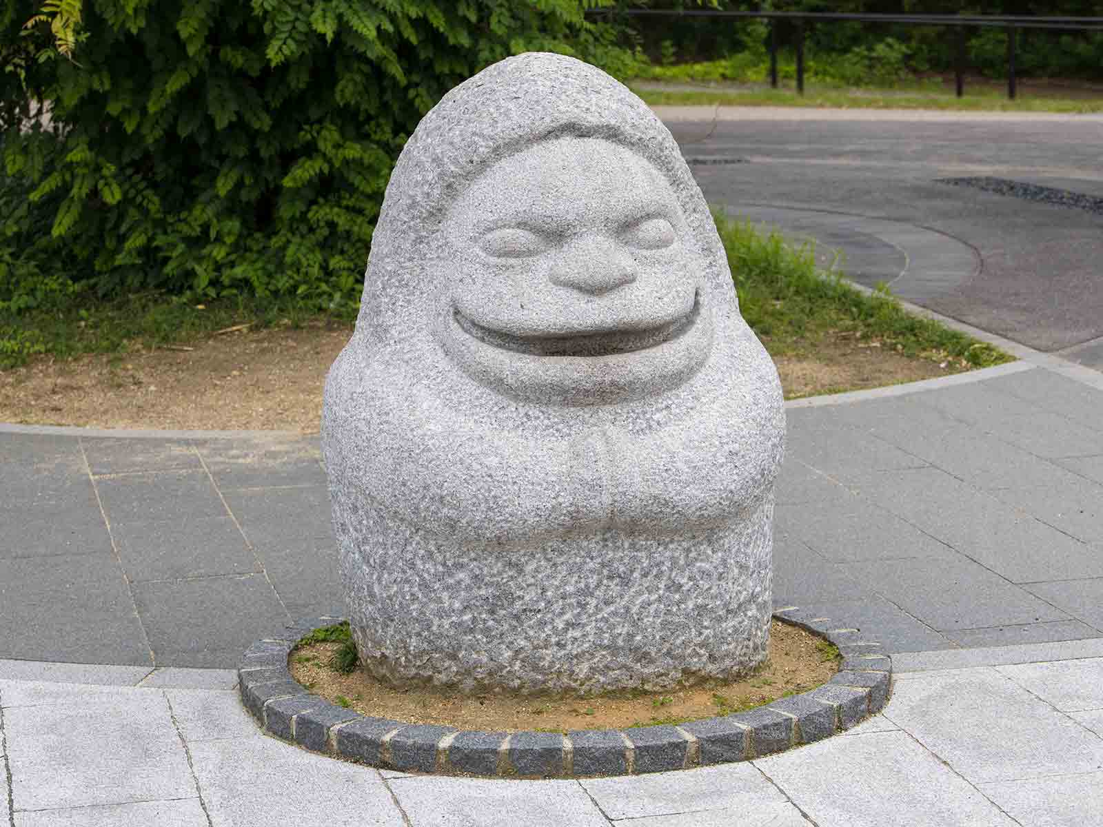 夕暮れ前のやわらかい光が、石人の不思議な魅力を一層引き立ててくれていました。