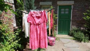外観の撮影OKエリアでひときわ目立っていたのが、裏庭に干された魔女サイズの洗濯物。