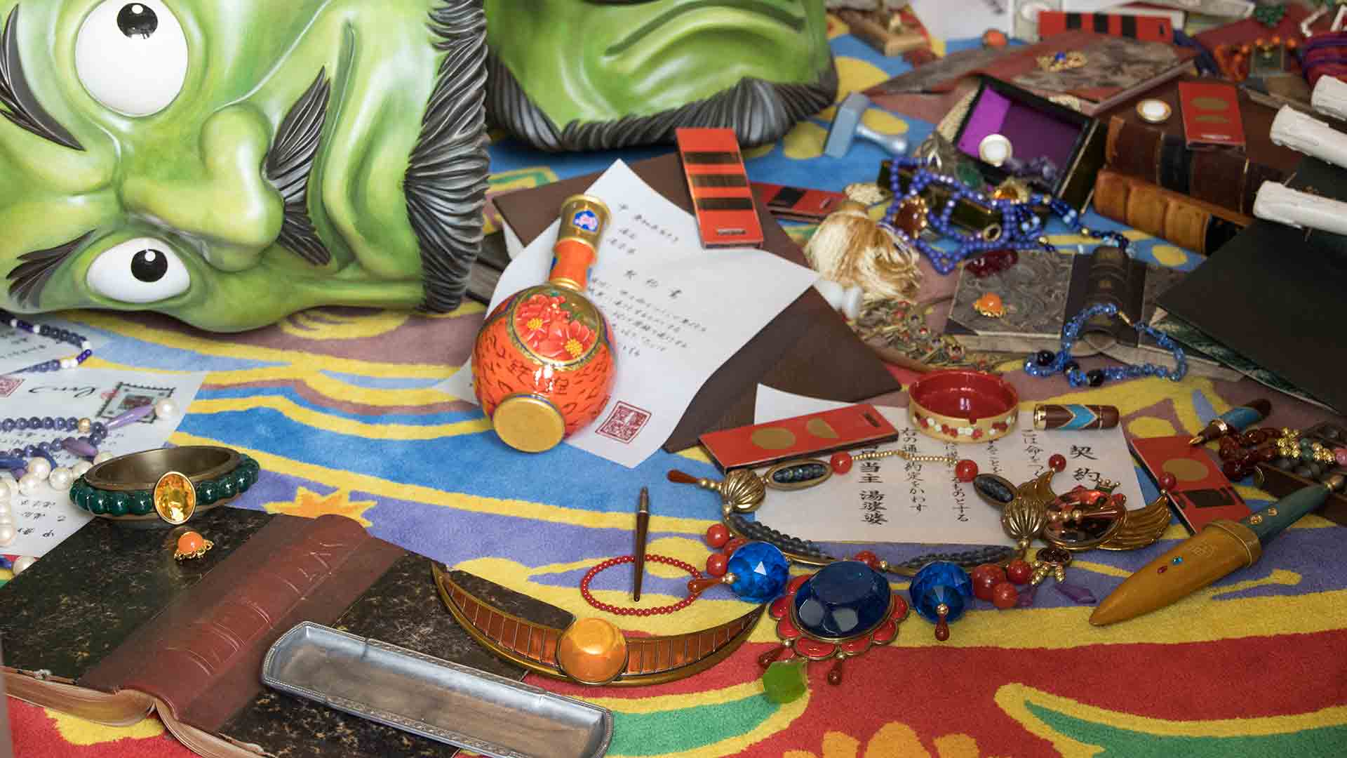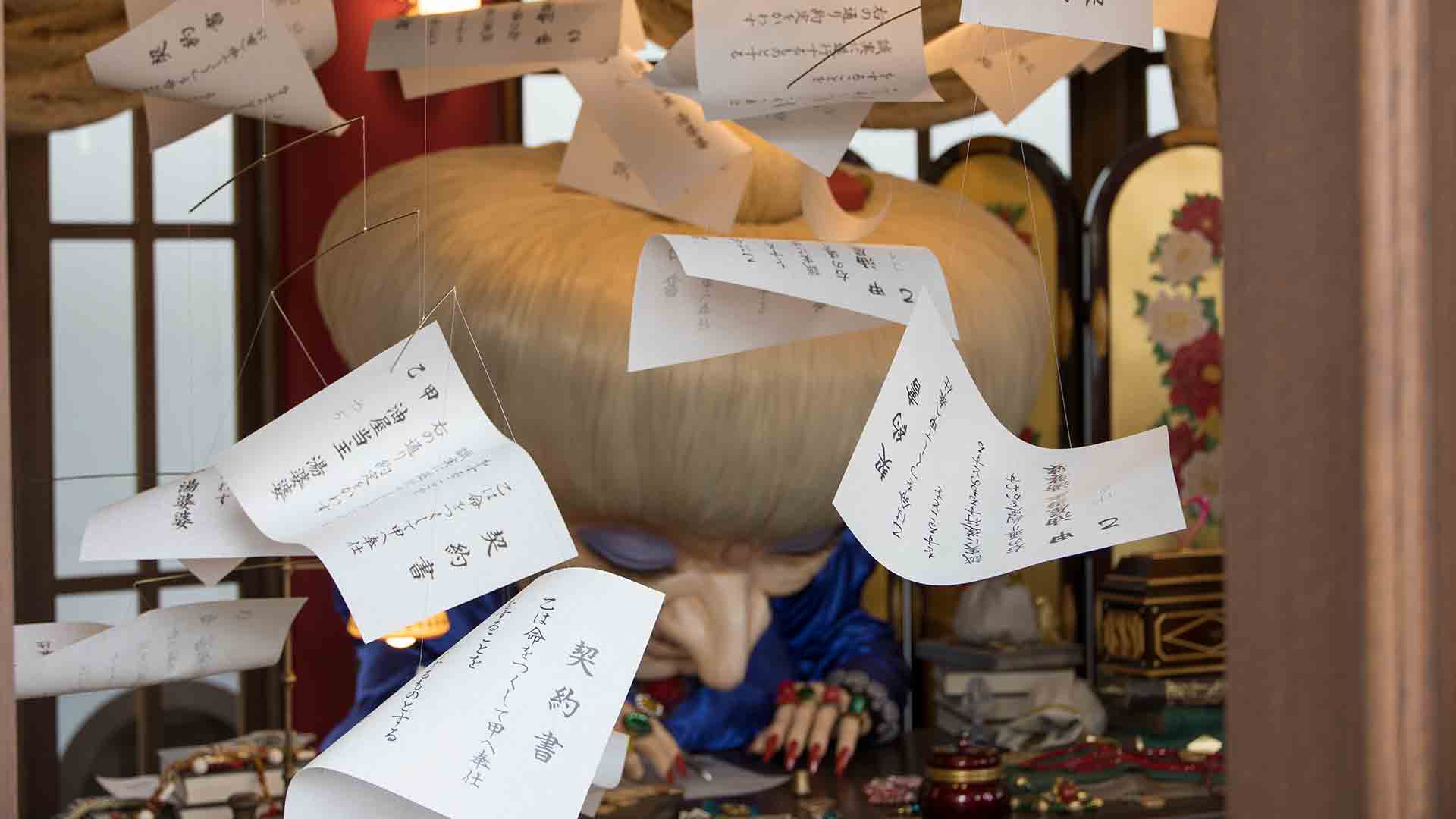 二体頭が横たわっていて床には湯婆婆のお宝