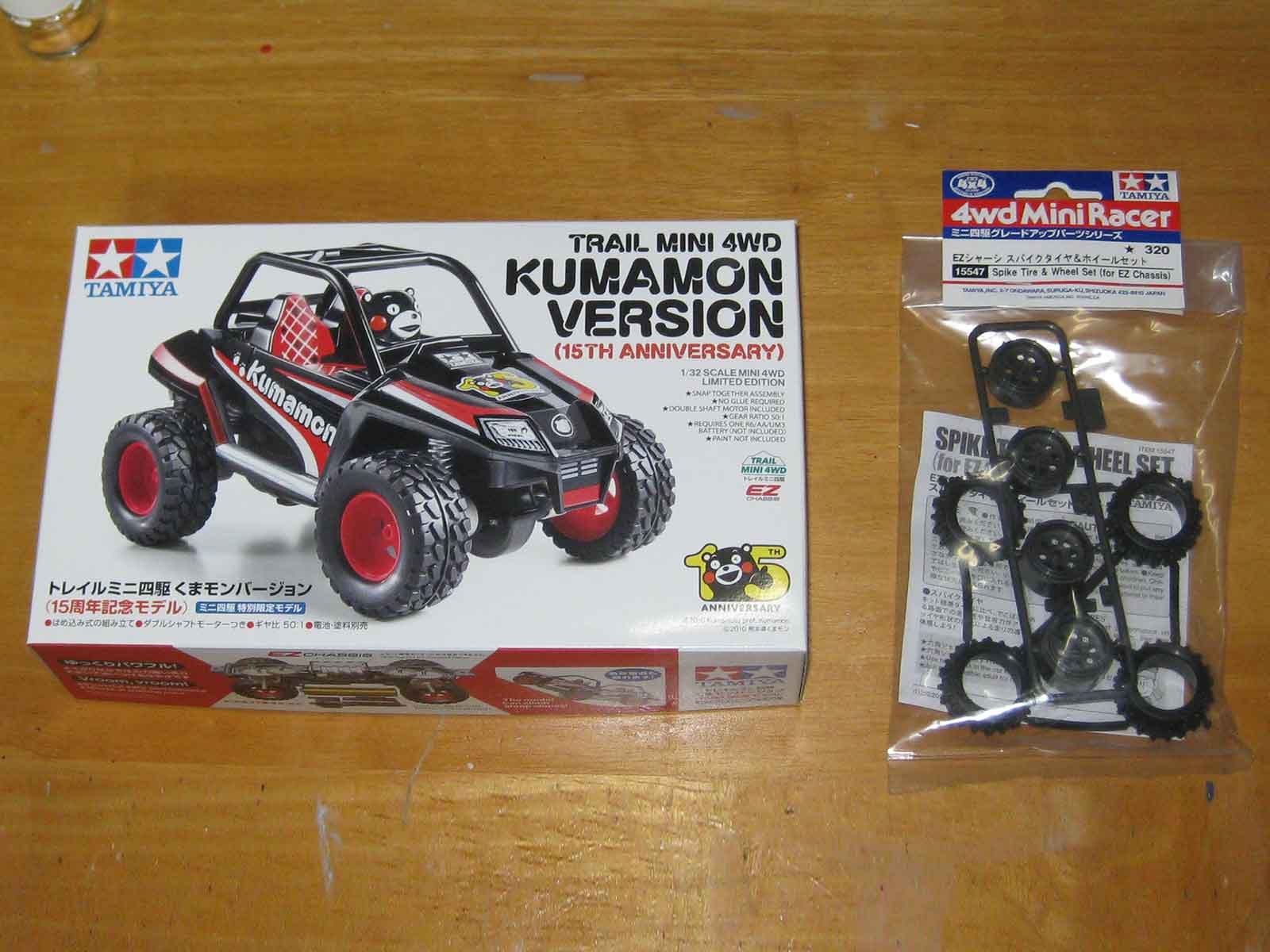 先日予約していたミニ四駆限定販売商品、 **Item No:95173「トレイルミニ四駆 くまモンバージョン(15周年記念モデル)」**がついに我が家に届きました。