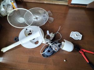 次に取りかかったのは、今年の夏で退役した扇風機の解体作業。
