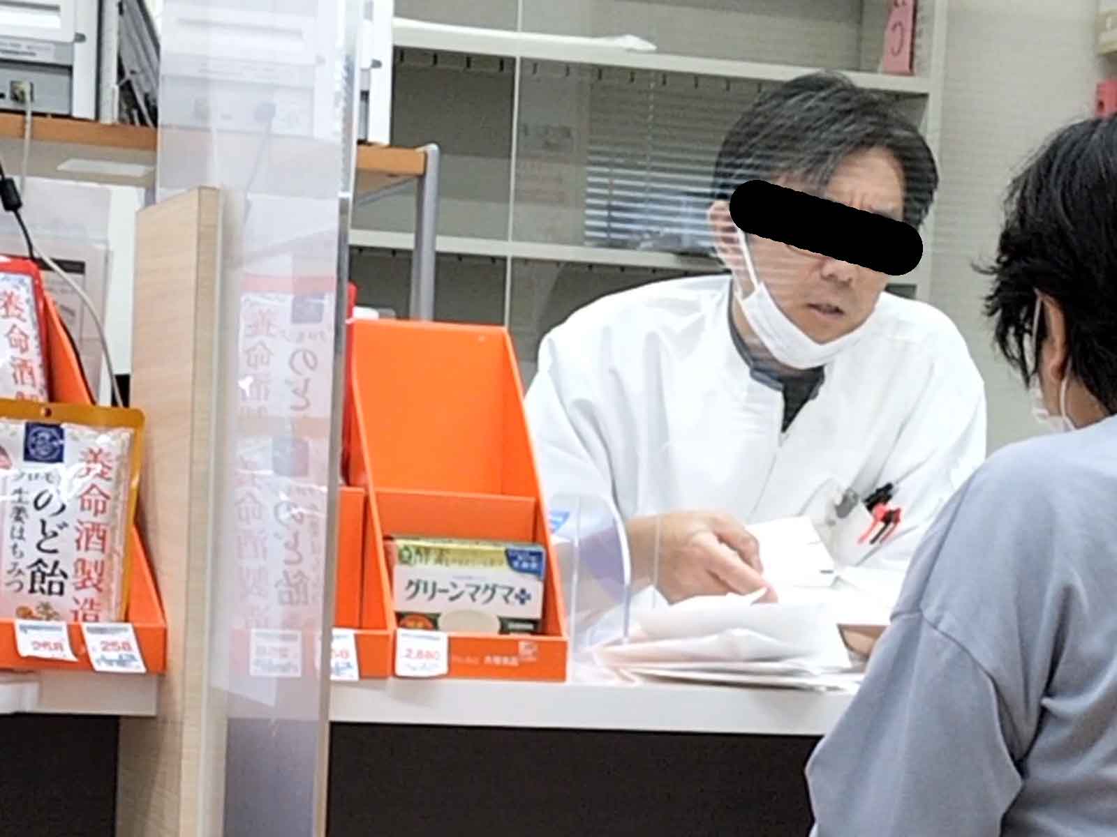 そこで、ふと目に入った光景。 薬剤師が、あごマスク。