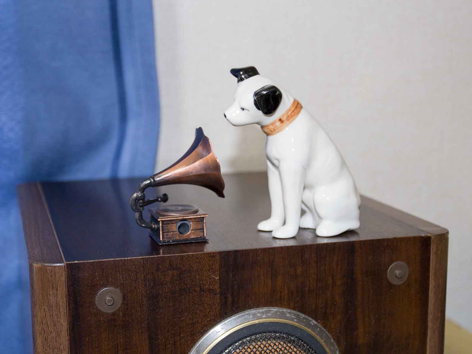 以前から日本ビクターのファンで、VHSデッキやオーディオを揃えていたので、ぜひとも並べて飾りたいと思っていました。もうVHSは手元にありませんが、スピーカーの上に鉛筆削りを置いてみました。ビクターのロゴ入りの鉛筆削りは、懐かしさとアンティーク感が合わさり、オーディオ機器との相性も良く、インテリアとしての存在感を高めています。