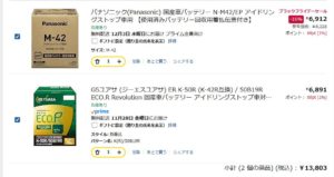 ライズ用:Panasonic製 M-42(アイドリングストップ車対応) スペーシア用:GSユアサ製 K-50R(K-42R互換)