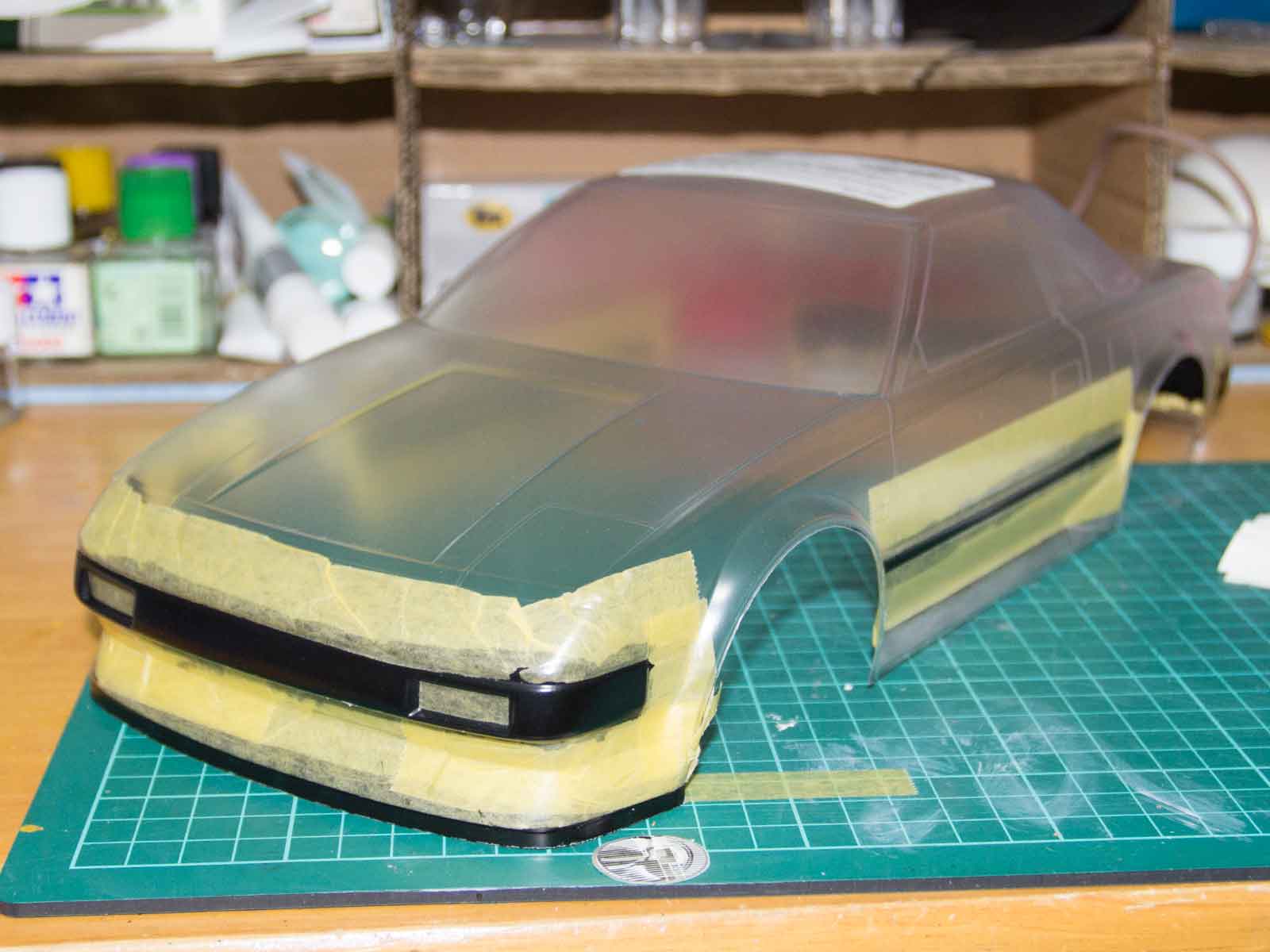 下処理が整ったので、次回はいよいよウインドウ部分をマスキングして赤のスプレー塗装へ。