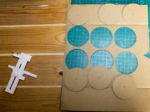 次に捨てる予定の段ボールをサークルカッターで切り出し