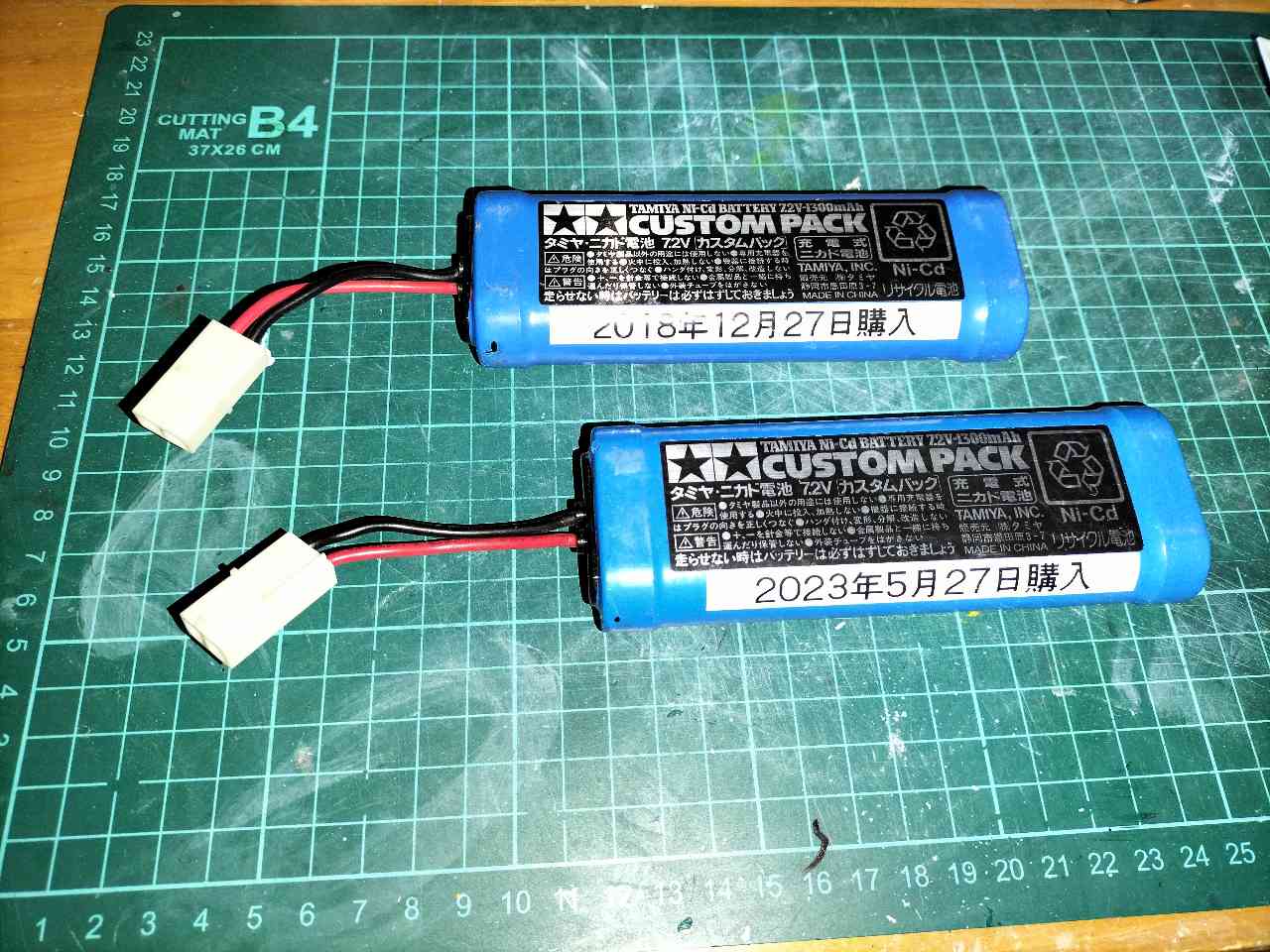 その中に、長年お世話になったタミヤのニッカドバッテリーA型も。私はいつも、テプラで購入日までしっかり貼って管理しているのですが(笑)、今回のバッテリーは2016年12月27日購入。充電器にかけても、わずか5分で「充電完了」と表示されるようになってしまい…これはもう、寿命ですね。ありがとうの気持ちを込めて、今回のゴミの日に出すことにしました。