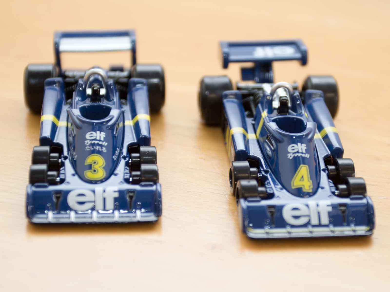 「同じ車を2台も買う必要ある?」と思われるかもしれませんが、そこがタイレルP34の奥深さ。タイレルP34は、1976年のF1シーズンで話題をさらった6輪マシン。その奇抜な構造だけでなく、レースごとに微妙に仕様が異なるのが魅力です。