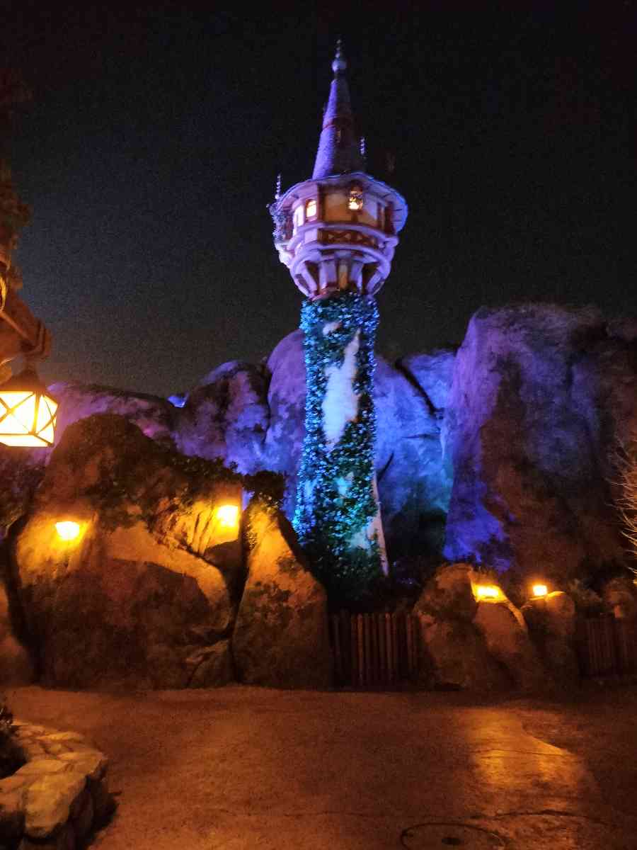 夜のパークは照明が綺麗で、待ち時間もどこか特別な時間に感じられるのが不思議。 気づけば、思ったより早く順番が来て、無事にアナ雪を満喫。 アナ雪を出た瞬間、時計を見るとまだ間に合いそう。 急ぎ足でラプンツェルへ向かうと、なんと 待ち時間30分 の表示。 「これは行くしかない!」とそのまま列へ。 夜の塔がライトアップされていて、雰囲気が最高。 この時間帯のラプンツェルは本当に“物語の中に迷い込んだ感”が強くて、並んでいるだけで幸せでした。 気づけば21時過ぎ。閉園ギリギリまで粘った結果… ラプンツェルを乗り終えた頃には 21時を過ぎて いて、まさに閉園ギリギリ。 でもそのおかげで、 アナ雪とラプンツェルという人気アトラクションを2つ制覇! おかげで「ディズニーシー嫌いにならずに済みました(笑)」 昼間は混雑で心が折れそうでも、 夜のファンタジースプリングスはワンチャンある。 今回それを身をもって実感しました。