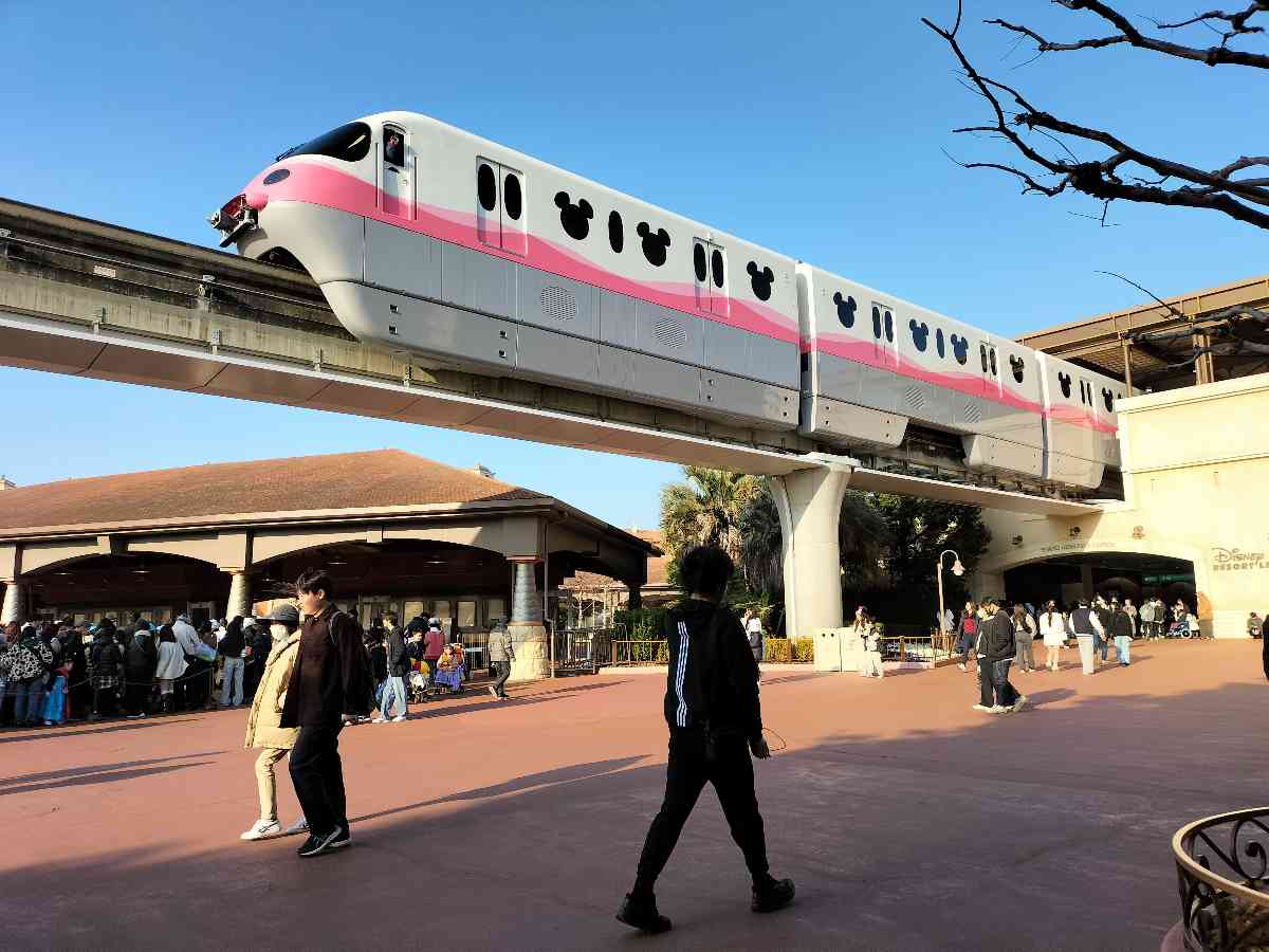 朝の澄んだ空気の中、ディズニーシー・ステーションに到着。 ホームに降り立った瞬間、目に飛び込んできたのは――人、人、人。