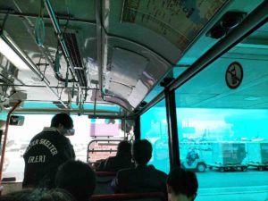 そのままバスに乗り込み、滑走路脇の景色を眺めながら出発待ち。 そして予想通り、フライトは10分遅れに。
