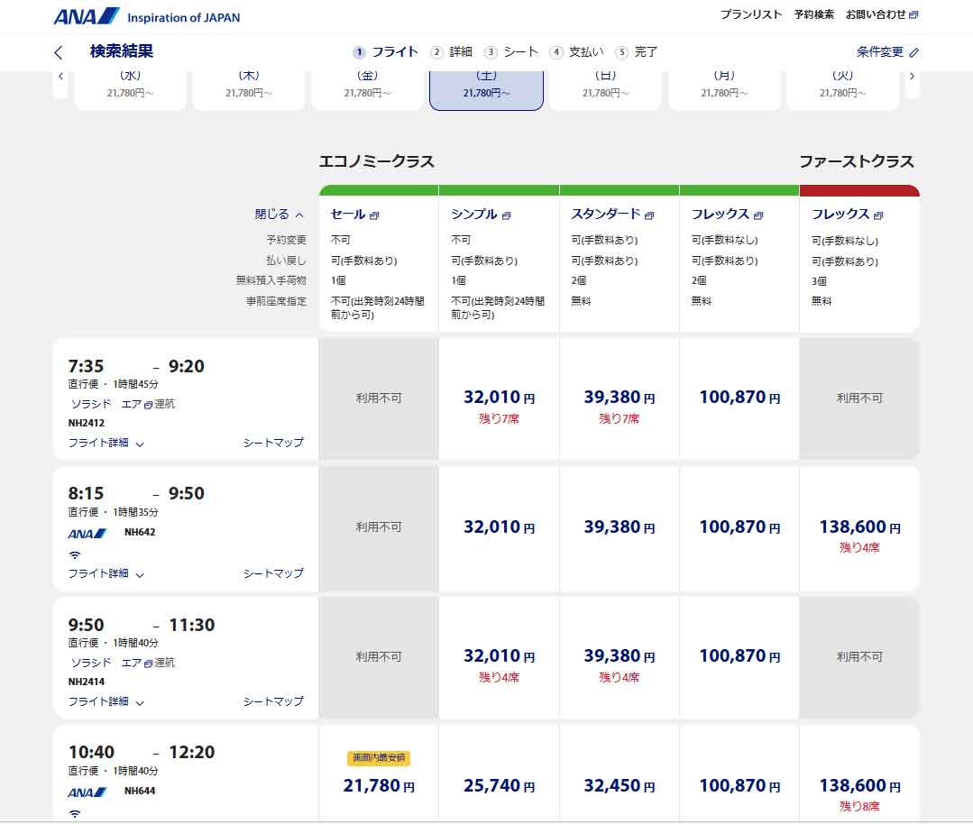 ところが、5月19日からの新しい運賃体系の影響なのか、今回のタイムセールは条件がかなり渋い。行きの朝便が3便とも対象外で、最安で取れるのは12時20分羽田着の便。TDRに直行するならまだしも、今回の初日は藤子・F・不二雄ミュージアムに行こうと考えているので、この時間は正直使いにくい。