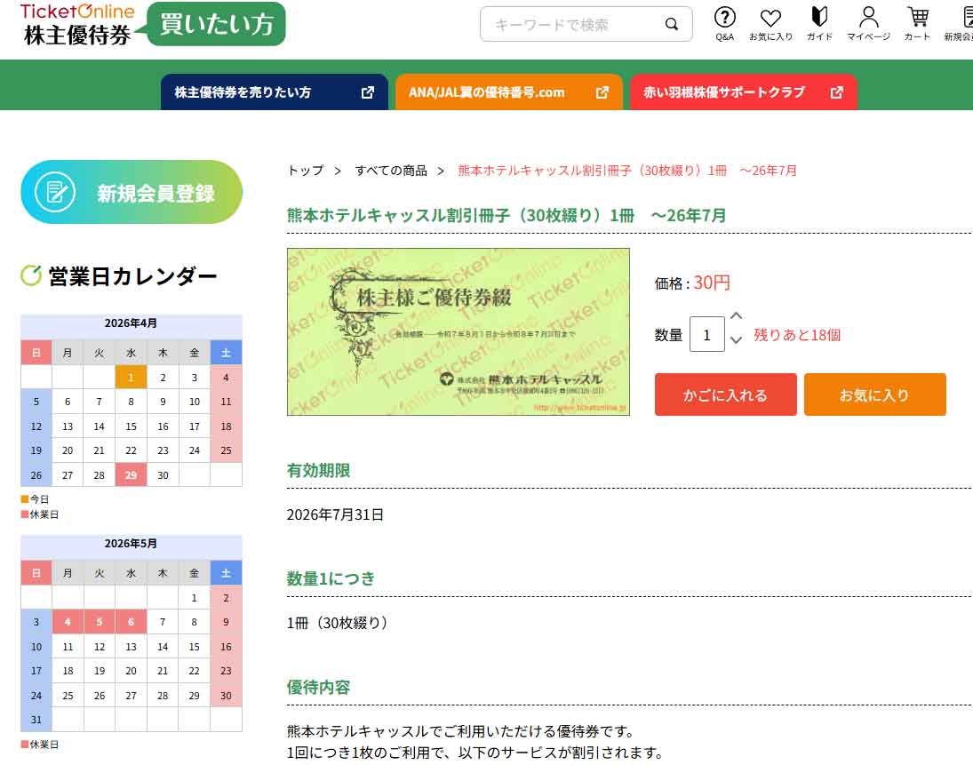 まず目についたのは、ホテルキャッスルの株主優待券。 メルカリでは *1枚500円前後* で売られている。